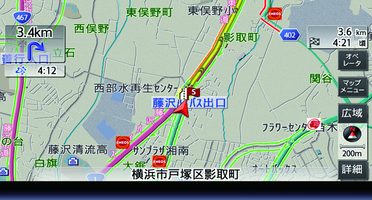 地図(レベル3)情報の表示は、送られてきた情報を車載機で処理(演算)した上で地図上に重ねて表示しています。このためVICS情報の表示に関しては、受信情報に整理、処理を行うために、多少遅れて表示されることがあります。