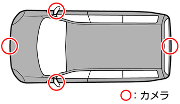 トップビューに表示される車両アイコンと、周りの画像に映っているものとの位置関係は、実際とは異なります。