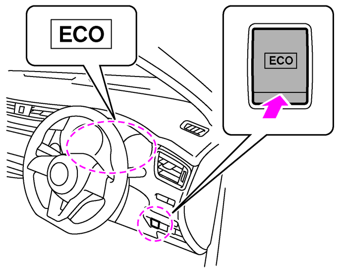 ECOモードを解除するときは、スイッチを操作したあと、一旦アクセルペダルから足を離してください。