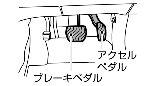 アクセルペダルとブレーキペダルの位置を確認し、正しい運転姿勢(正しい運転姿勢について)がとれるようにハンドル、シート位置を調節します。
