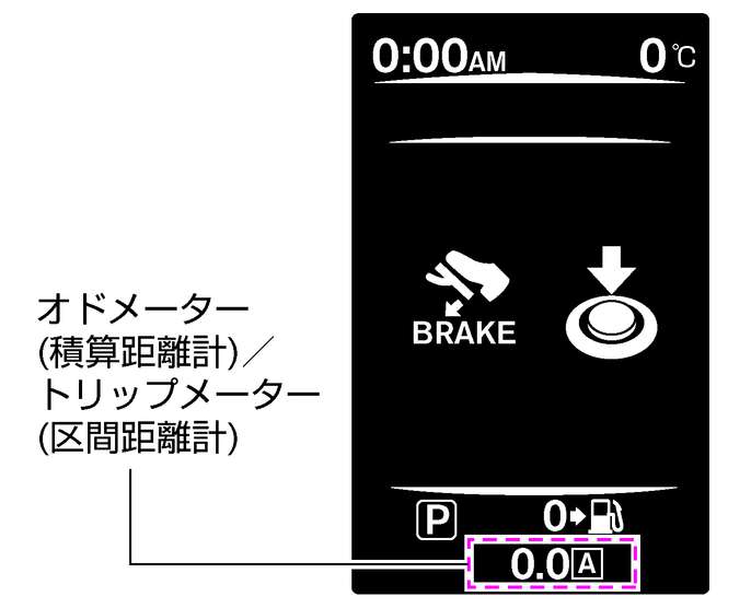 リセットしてからの走行距離をkmで表示します。AとBでそれぞれ使い分けることができます。