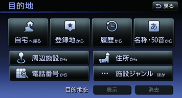 登録地の追加やルート編集画面で行先の追加などで一部メニューが変わることがあります。