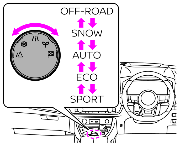 パワースイッチがONのとき、ドライブモードセレクターを操作すると、選択可能なドライブモードがアドバンスドドライブアシストディスプレイに表示されます。