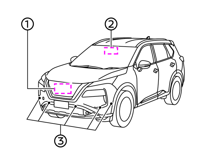 プロパイロット(ナビリンク機能付)を正しく作動させるために、カメラ前方のフロントガラス、レーダーセンサーおよびソナーセンサー周辺のお手入れを行ってください。