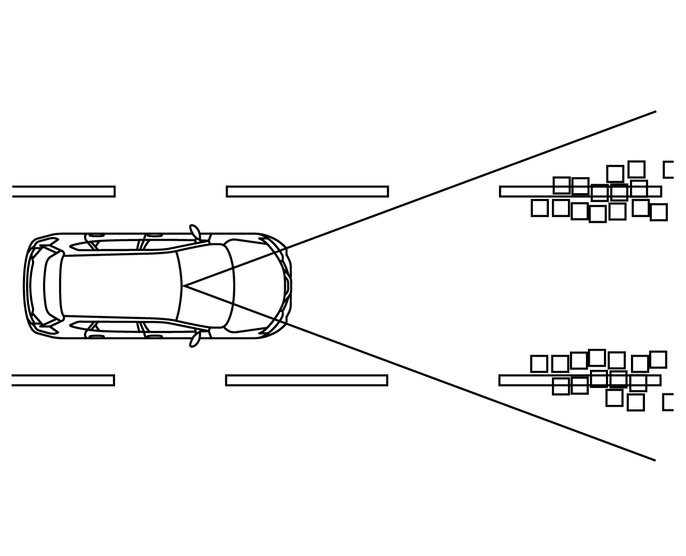 フロントガラス上部のマルチセンシングフロントカメラにより走行車線のレーンマーカーを検知します。