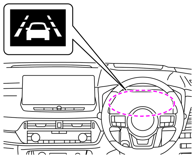 走行車線の右側もしくは、左側のレーンマーカーに近づいたと判断すると、ステアリングホイール(ハンドル)の振動とともにメーター内のインテリジェント LI(車線逸脱防止支援システム)表示がオレンジ色に点滅します。