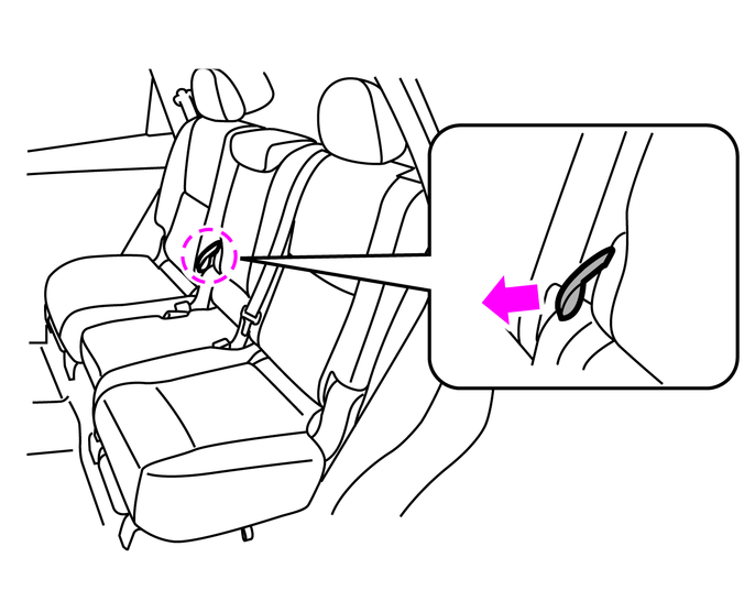 セカンドシート中央席にあるストラップを引いて、アームレストを前に倒します