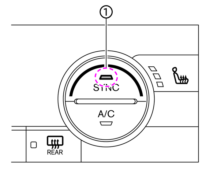 助手席、後席のSYNCモードを解除するとSYNCスイッチの表示灯(1)が消灯します。