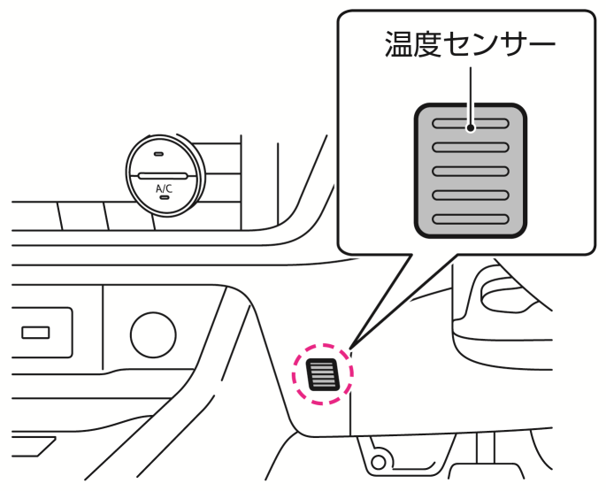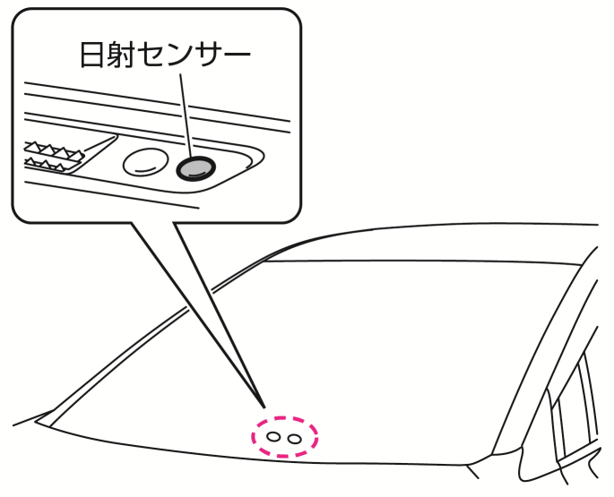 オートエアコンの自動温度調節は、日射センサーと温度センサーで行っています。センサーをふさいだり、クリーナーなどを吹き掛けないでください。センサーの感度が低下し、正常に作動しなくなります。