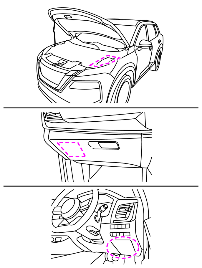 各ヒューズの位置は、ヒューズボックスのふたの裏側またはヒューズボックス付近に表示してあります。