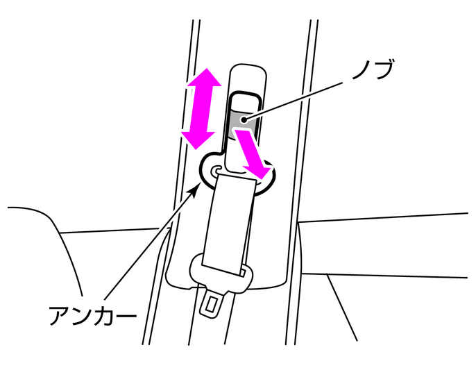 ベルトが肩に確実にかかる位置にアンカーの高さを調節する。また、アンカーが確実に固定されていることを確認する。