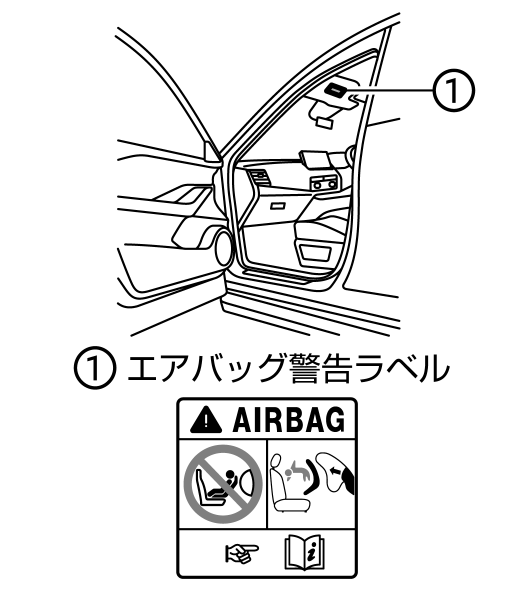 SRSエアバッグが作動したときに強い衝撃を受け、死亡または重大な傷害につながるおそれがあります。やむをえず助手席に取り付けるときは、シートをできるだけ後ろに下げ、必ず前向きに取り付けてください。