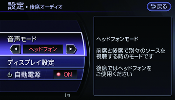後席オーディオは車両のスピーカーで音声を聞くスピーカーモードと、後席用のヘッドフォンで音声を聞くヘッドフォンモードがあります。