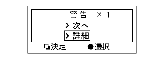 設定の最初の画面に「警告×0」と表示している場合は、警告事項がありません。その場合、「>詳細」「●選択」を表示しません。