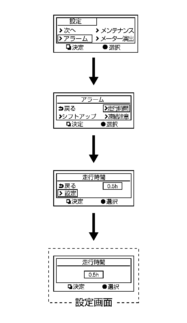 シフトアップ、走行時間、凍結注意の表示を設定できます。