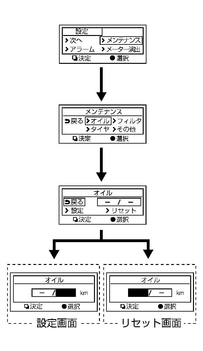 リセットするときは、スイッチ(●)を約1秒以上押します。(走行時間、走行距離を同時にリセットします。)