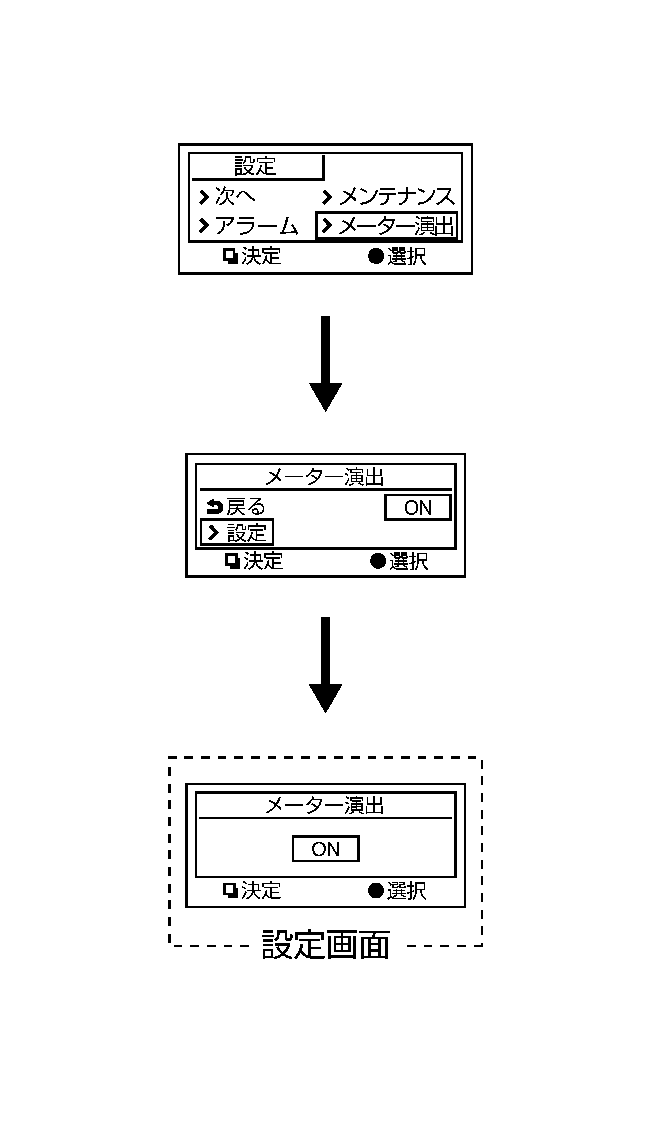アラーム、メンテナンス、メーター演出を設定することができます。