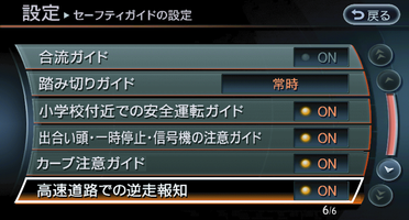 高速道路での逆走報知機能は、状況によって報知しないことや報知の内容が実際の状況と異なることがあります。実際の道路状況を確認のうえ、安全に走行してください。