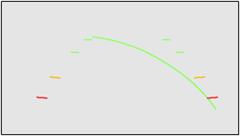 右画面にフロントビューが表示されている場合には予想進路線(緑色)が表示されます。