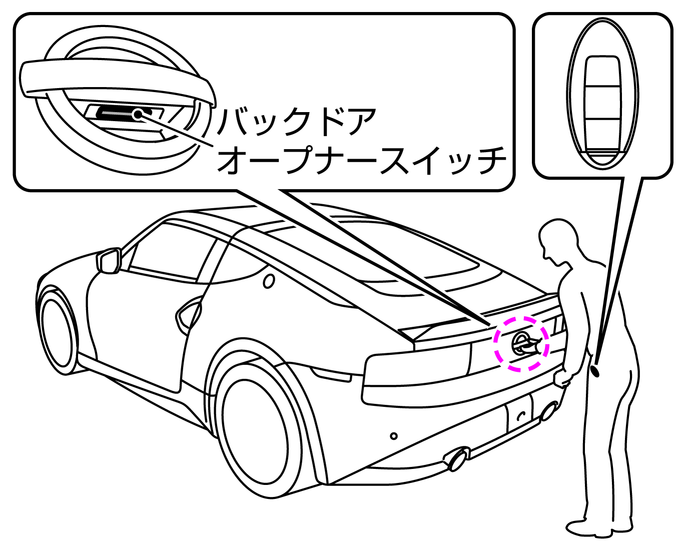 キーを携帯しバックドアオープナースイッチを押すと、全てのドアが解錠します。