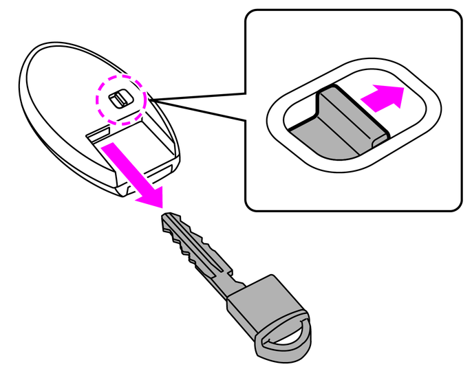 • 1. キー裏側のロックを外しながら、内蔵キー(メカニカルキー)を引き抜きます。