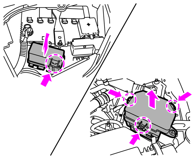 エンジンルーム内のヒューズボックスは、バッテリーカバーの下にあります。