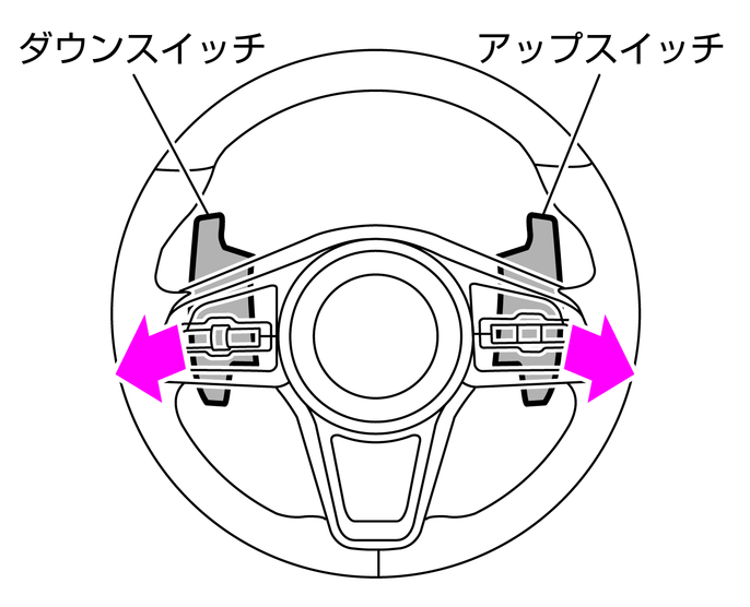 シフトポジションがDで走行中(約10km/h以上)のとき、パドルシフトで切り替えられます。