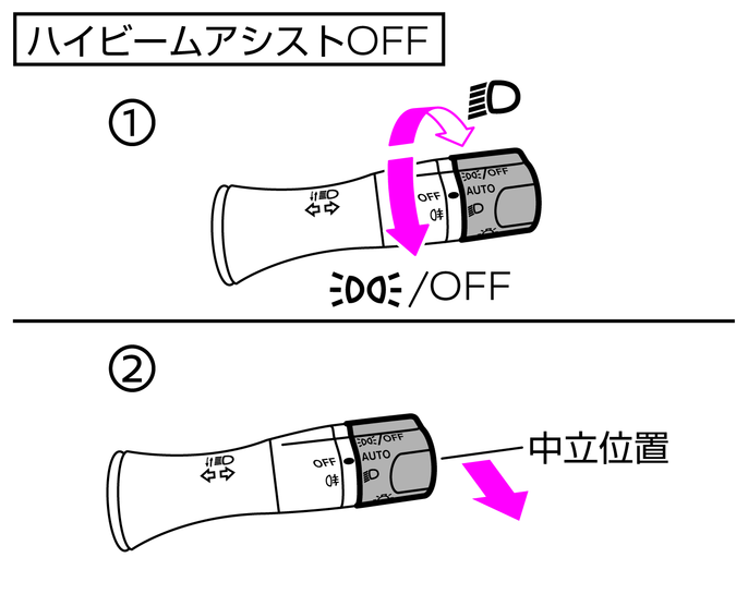 次のいずれかの操作をすると、ハイビームアシストがOFFになります。