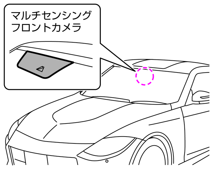 フロントガラス上部に周囲の状況を感知するためのカメラがあります。