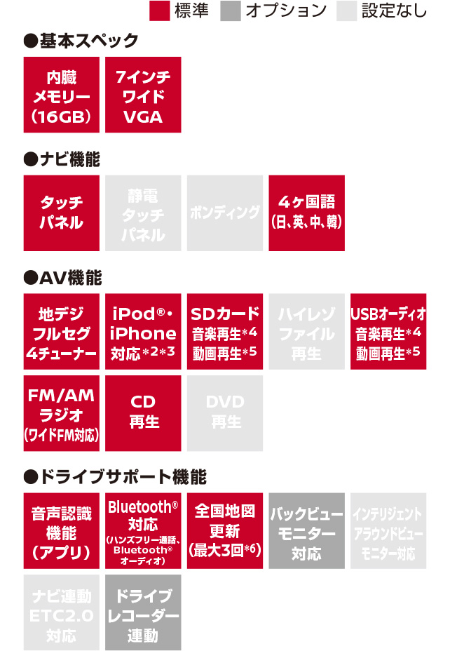 *6 2026年度版まで最大3回地図更新無料 3年以内の点検入庫時(新車無料6ヵ月点検、安心6ヵ月点検、法定12ヵ月点検、初回車検)の場合に無料にて最大3回実施いたします。詳しくは、カーライフアドバイザーにお問い合わせください。