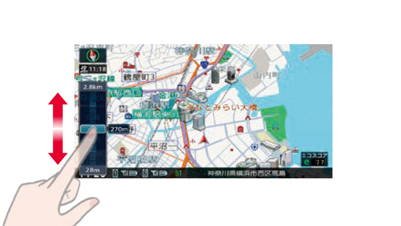 スライダーバーをドラッグすると縮尺を自在に変えることが可能です。