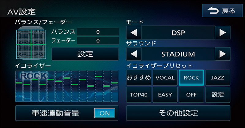 走行速度に合わせてボリュームと音質補正を自動で調整します。