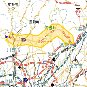 | 大阪府 | 高速有料道路 | 新名神高速道路 | 高槻JCT・IC/茨木千提寺IC/茨木千提寺PA/箕面とどろみIC/川西IC/26.2km |