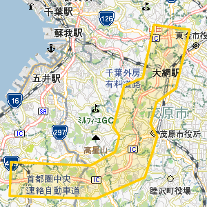 | 千葉県 | 高速有料道路 | 首都圏中央連絡自動車道 | 東金IC・JCT/茂原北IC/茂原長南IC/市原鶴舞IC/木更津東IC/43km |