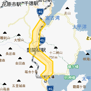 | 岩手県 | 高速有料道路 | 国道45号線 | 山田IC/山田北IC/宮古南IC/14.0km |