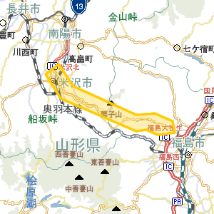 | 福島県 | 高速有料道路 | 東北中央自動車道 | 福島大笹生IC/米沢八幡原IC/米沢中央IC/米沢北IC/35.6km |