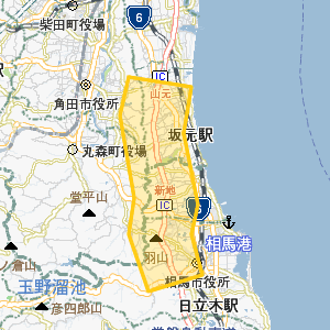 | 宮城県 | 高速有料道路 | 常磐自動車道 | 山元IC/新地IC/相馬IC/23.3Km |