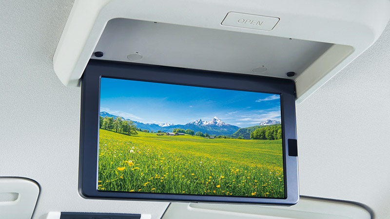 後席でTVや動画コンテンツを楽しめる後席専用モニターは、ドライブをより快適にする人気オプション。前席でナビゲーション画面を表示しながら、後席ではさまざまな映像を楽しめるので、移動時間が特別なひとときに変わります。