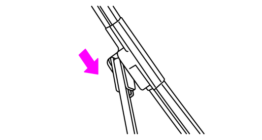 ワイパーブレードを矢印の方向に動かして取り外します。