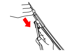 ワイパーブレードのツメを押したままにします。