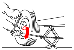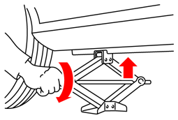 ジャッキハンドルを回して、タイヤと地面が少し離れるまで、ジャッキアップします。