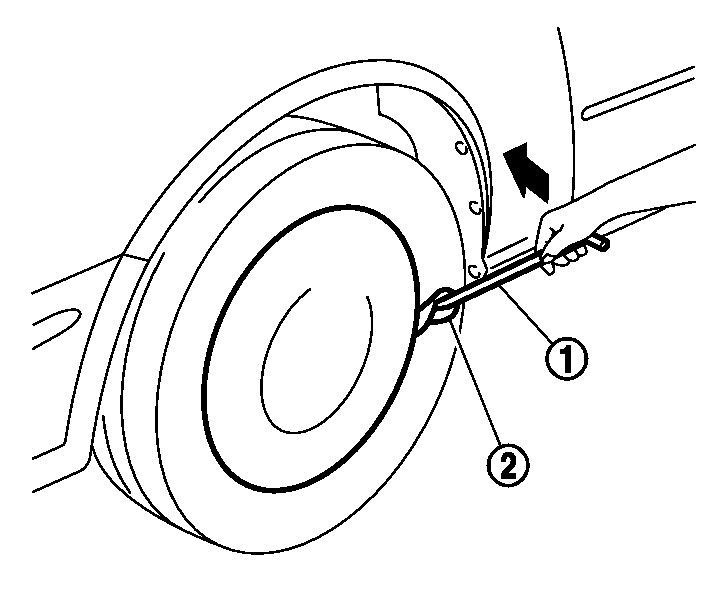 ホイールカバーを取り外すには、ジャッキロッド(1)を図のように使用します。