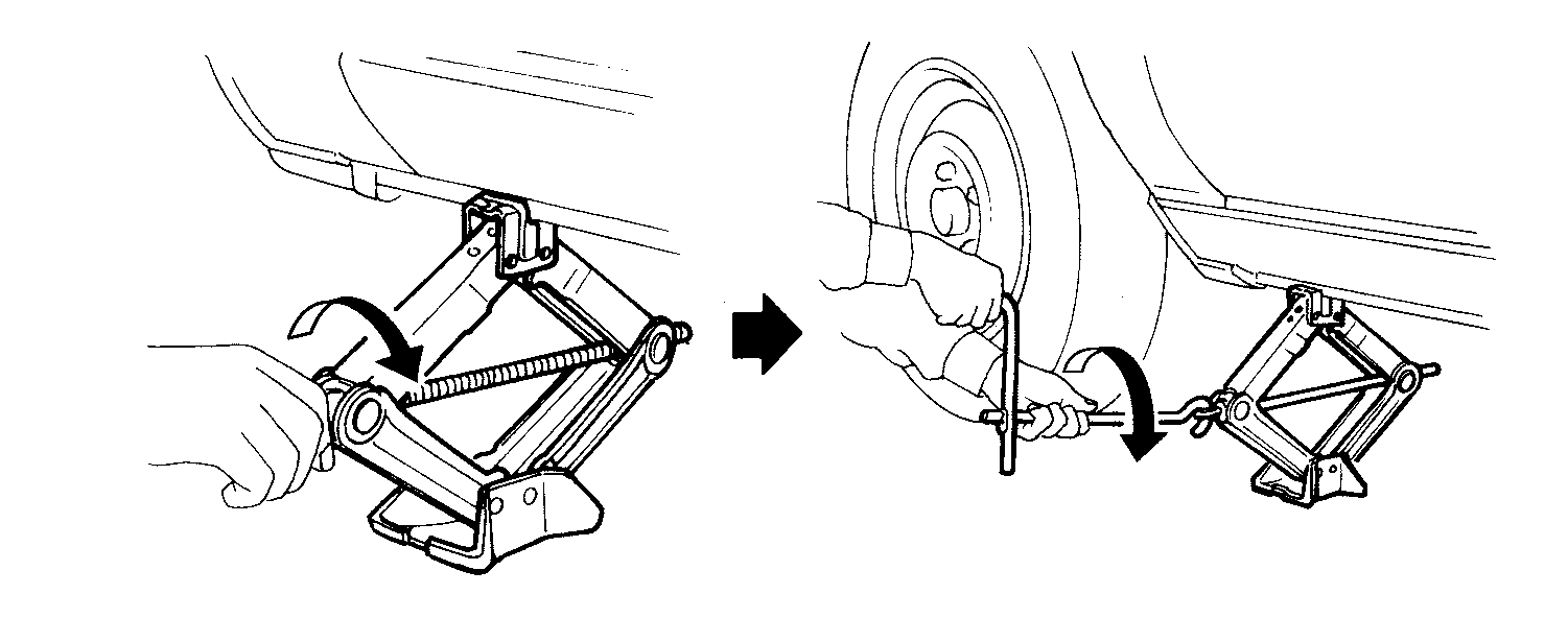 ジャッキは必ず車載されたものを使い、他車のジャッキは使わないでください。また、車載されたジャッキは他車に使わないでください。
