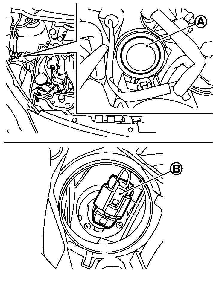 ヘッドランプバルブを取り外します。バルブは取り外すときに揺すったり、回転させたりしないでください。