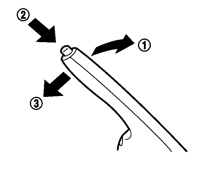 パーキングブレーキを解除するには、ブレーキペダルを確実に踏み込みます。パーキングブレーキレバーをわずかに引き上げ、ボタン(2)を押し、レバーを完全に下げます(3)。