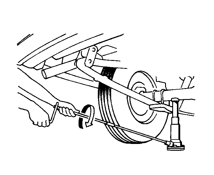 ジャッキハンドルを回して、タイヤと地面が少し離れるまでジャッキアップします。