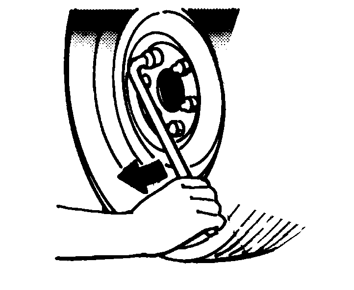 ホイールナットレンチで、全てのナットを反時計回りに約1回転ゆるめます。