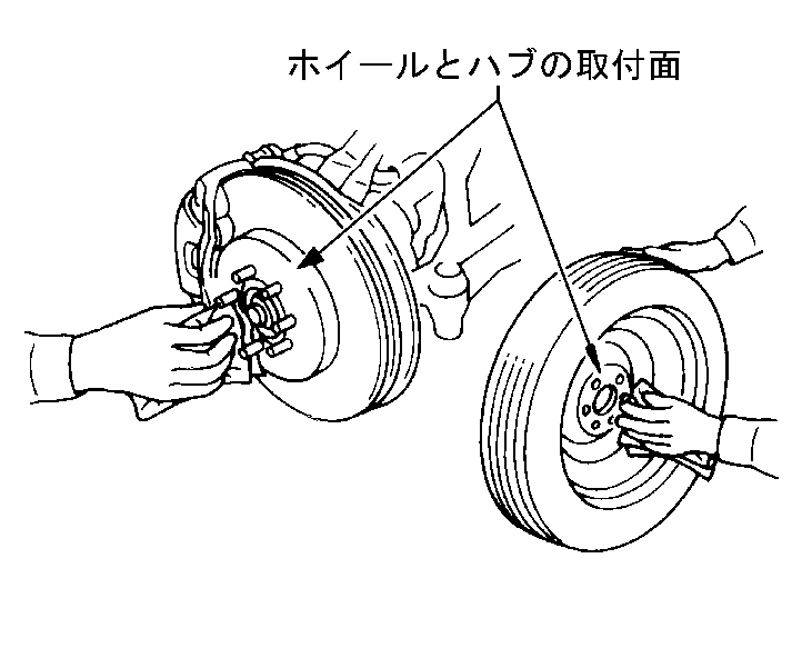 取付面が汚れていると、走行中にナットがゆるみタイヤが外れるおそれがあります。