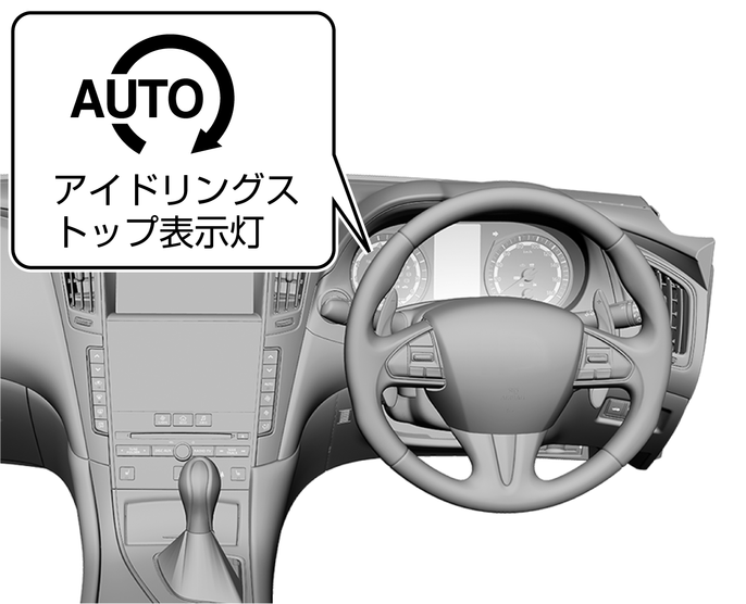 セレクトレバーがDまたはマニュアルモードの状態でブレーキペダルを踏み停車すると、自動的にエンジンが停止します。