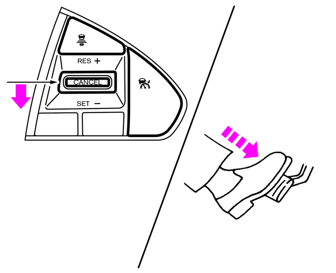 • ブレーキペダルを踏むと、減速(制御が解除)します。